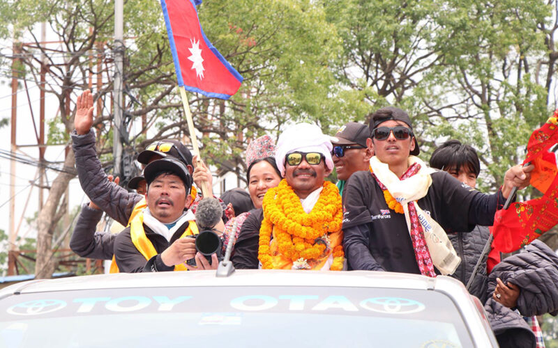 कृत्रिम खुट्टाको भरमा सगरमाथा चढेका हरिको भव्य स्वागत, मन्त्री किराँती पनि विमानस्थल पुगे